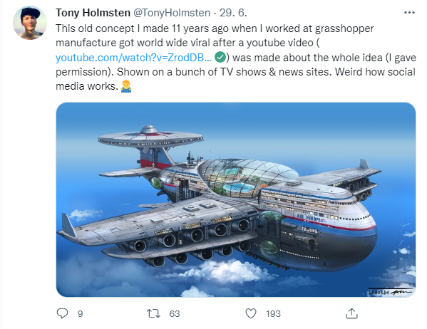 „Tento starý koncept, ktorý som vytvoril pred 11 rokmi, keď som pracoval vo Grasshopper Manufacture (vývojár videohier), sa stal virálnym po celom svete po videu na Youtube. Na vytvorenie nápadu som dal svoje povolenie. Ukazovali ho mnohé TV relácie a spravodajské portály. Zvláštne, ako fungujú sociálne médiá.🤷♂️“ zdroj: twitter.com/TonyHolmsten